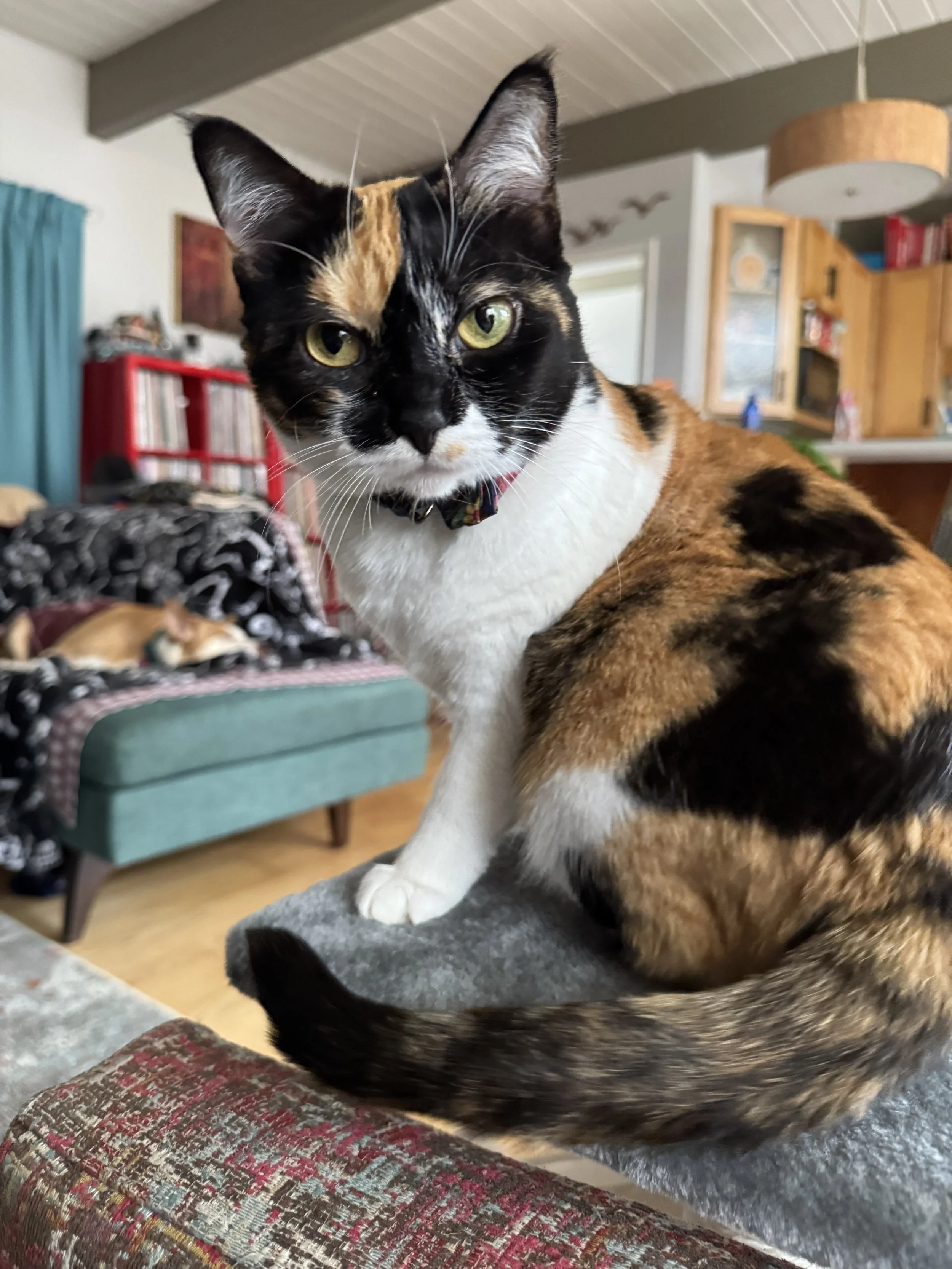 JoJo is our reluctant office manager. She also provides security, barking at visitors and delivery drivers alike. Managing a team of two humans and two cats is a tough job, and she takes it seriously. When not on the clock, she enjoys sleeping under a fuzzy blanket and walkies. A fan of fashion and hater of cold, she has an extensive sweater collection. Nubs are her favorite treats but honestly, she’s never met a cookie she didn’t like. Mindfulness and quiet contemplation are her preferred therapies; she’d journal if she had thumbs. She doesn’t mind disclosing that she takes an SSRI daily for her anxiety - and has for years! She’d like to remind you that this is a no-judgement zone and all are welcome!